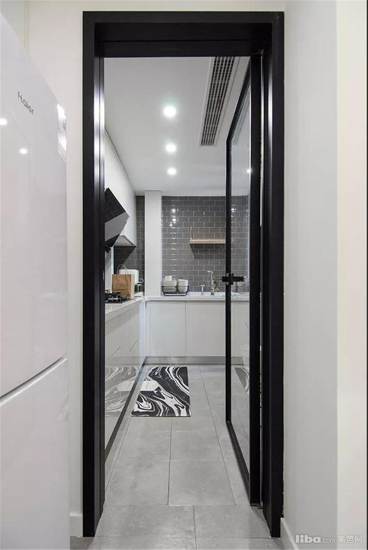 看看被玄关“偷走”一部分的厨房,厨房光线不好,采用大面积玻璃门能使厨房光线亮堂。