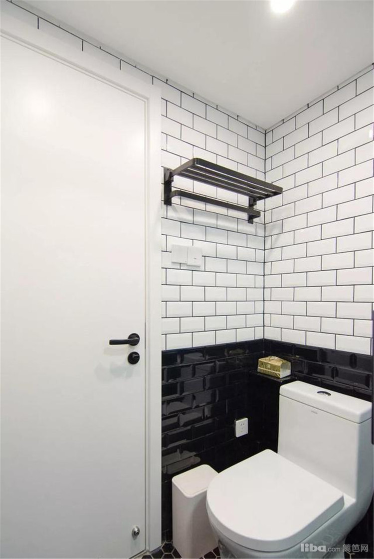 浴室里面采用黑白两种方砖进行铺贴,时尚感超强。