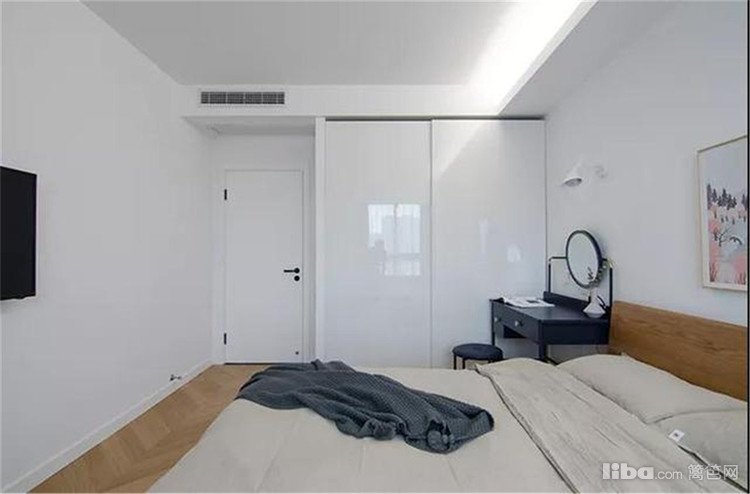 推拉门的衣柜,节约卧室空间,摆放一张化妆桌绰绰有余。