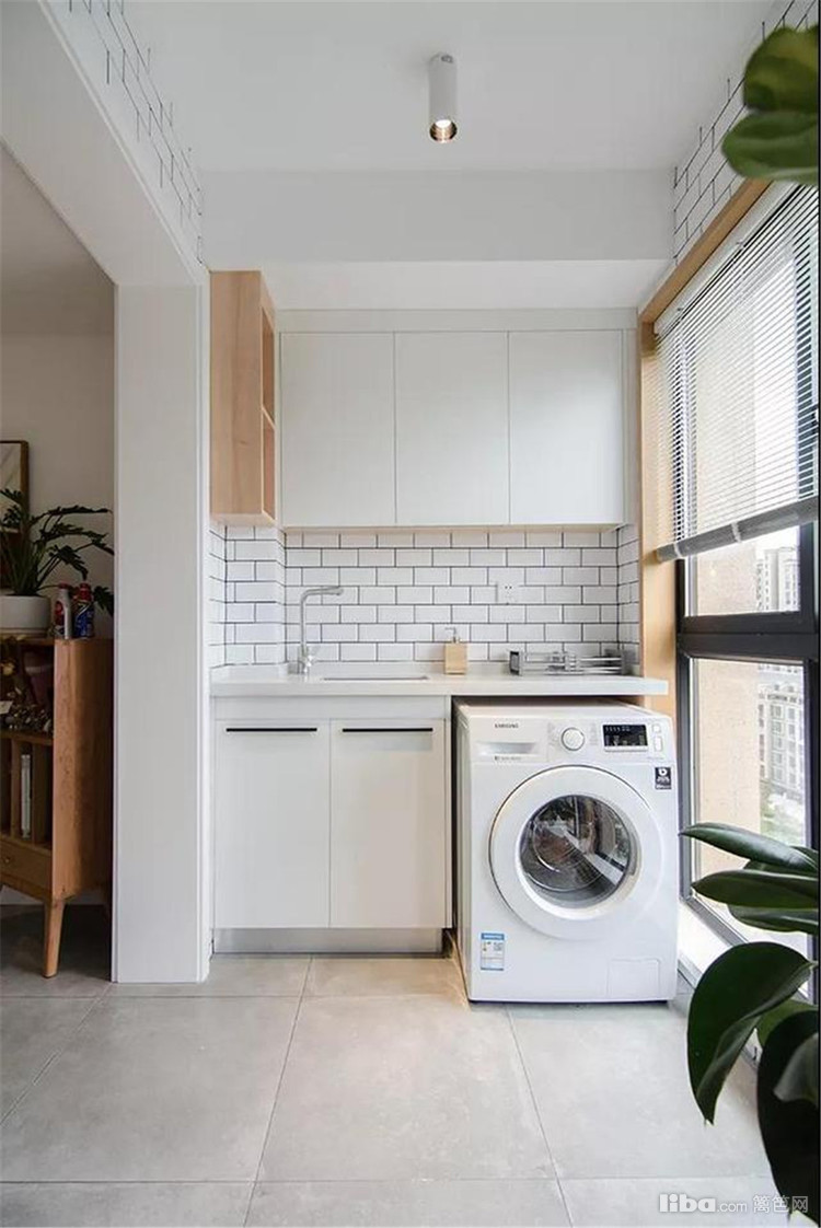 阳台铺了白色方砖,搭配哑光的白色橱柜,简约大气。窗帘采用百叶窗,虽然卫生不好打理,不过当阳光透过百叶照进时,很美。