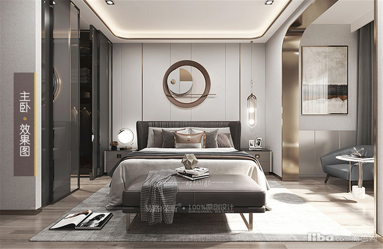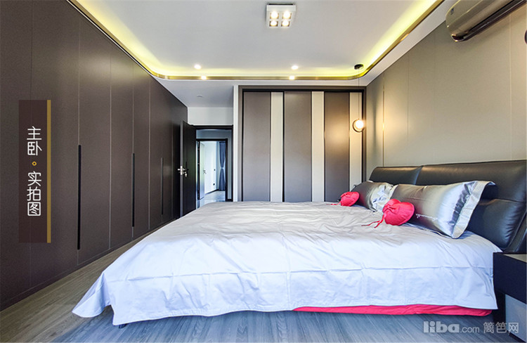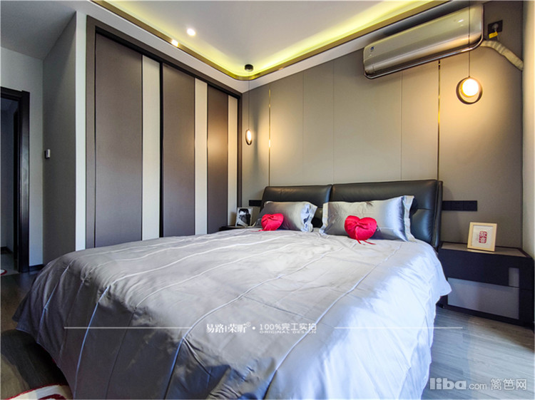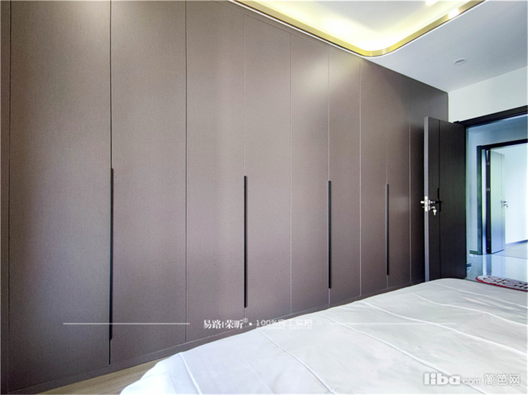 灯带的灯光隐藏在石膏板内,不仅对光感没有影响,同时看上去也比较高级;床头背景墙与床尾的衣柜完美匹配