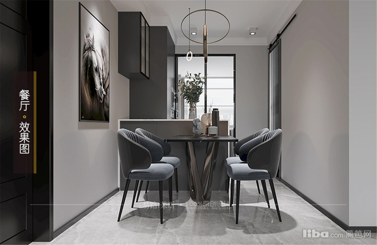 少许跳跃的餐椅和油画,陡然的让空间多出了那么一些可爱,隐约点缀其中的金属元素,让空间质感得到大提升!