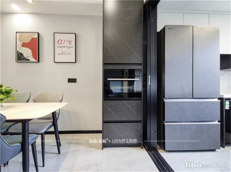 黑边轨道门隐藏在冰箱内,将厨房边隐形式开放厨房,兼顾颜值与实用性~