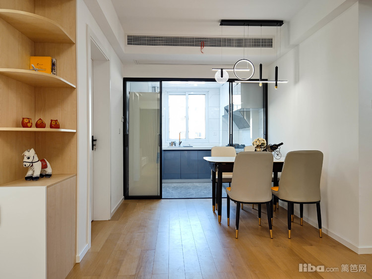 用玻璃移门隔开,功能区彼此又相对独立,还让餐厨形成洄游动线,日常生活更加方便。