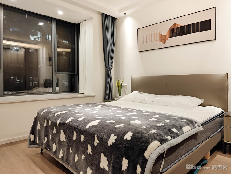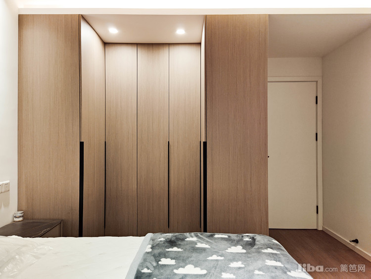 乍一看,大面积的冷色似乎给卧室定调为冷淡风,但这是表象哦。30%原木色+10%的暖色的搭配,以自然质感为空间营造舒适氛围,呈现出端庄雅致的空间感。