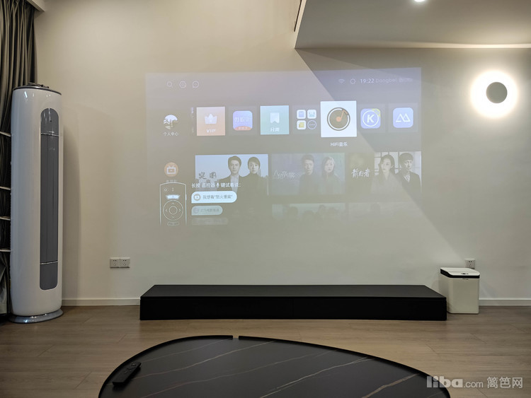 电视区域业主想要激光投影机,我们就要把墙留大并考虑到立式空调、电视柜的位置