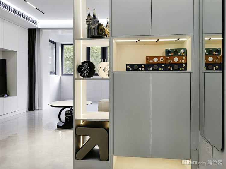 开门的视觉格挡让玄关起到一个调整入户心情的区域作用,在视觉上营造由小见大的视觉感受。