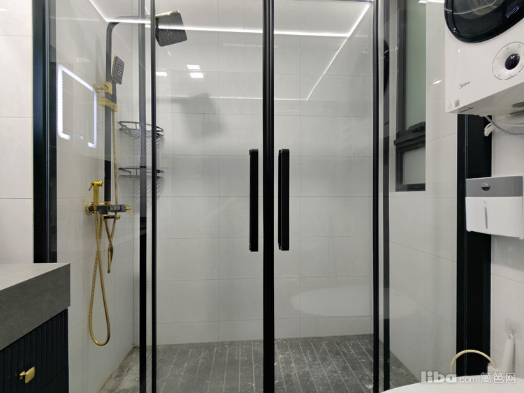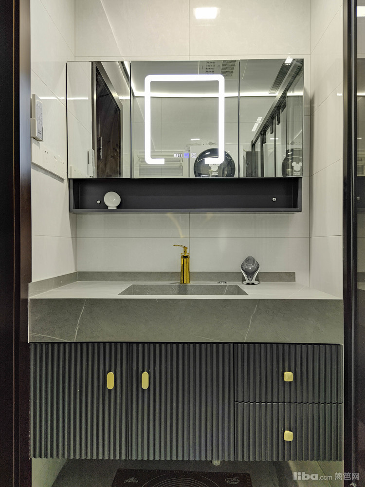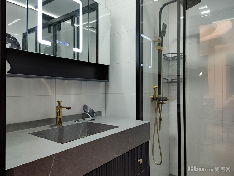 卫生间整体以白灰为主色调,配搭上金色五金件,直接拉高颜值!