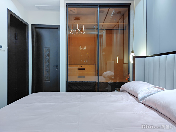 为了避免卫生间直对床铺,给衣帽间安装一个简易的有颜值的移门。