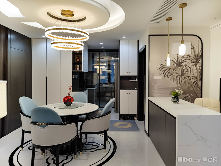 餐厅空间以浅色为主,黑与金点缀其间,辅以墨纹装饰,勾勒出舒适雅致的生活空间!
