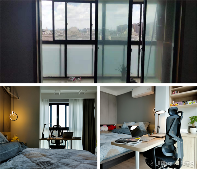 当空间受限时,可以把目光投向阳台,打通卧室阳台,空间变大不少,利用阳台垭口设计L型悬空书桌+收纳