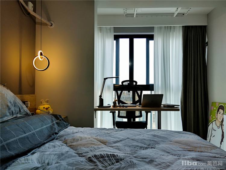 书房是利用阳台光线优势又结合床榻的一部分落座功能,同时满足两人同时办公或打游戏的功能