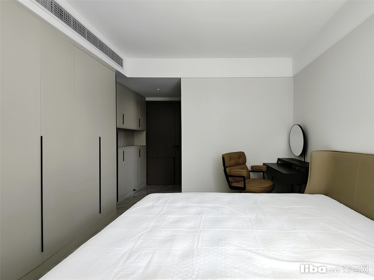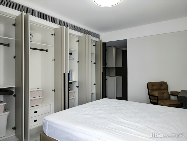 卧室进门一排柜到底,大大增加了卧室的收纳空间。