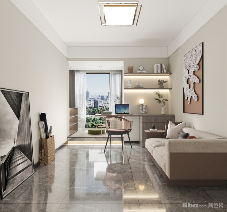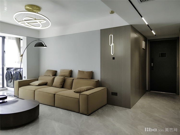 卡其色的沙发在暖色灯光的照射下,温润了空间的温度,也在视觉上提升了空间的质感。