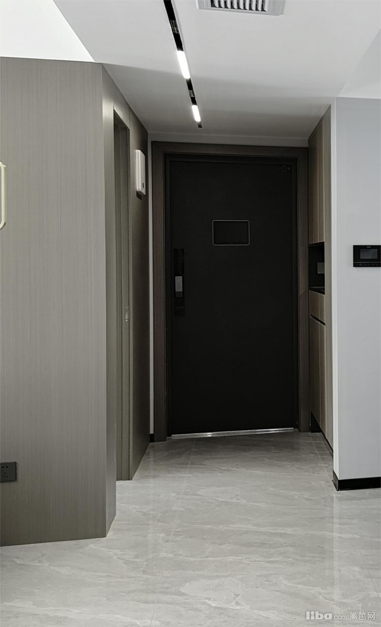 考虑到入户挂衣区域的布置,也布置了一列高柜,丰富它的整体功能性。