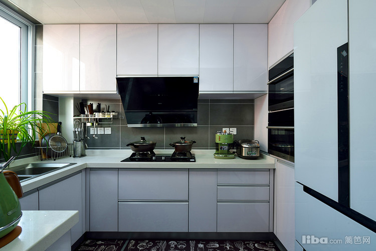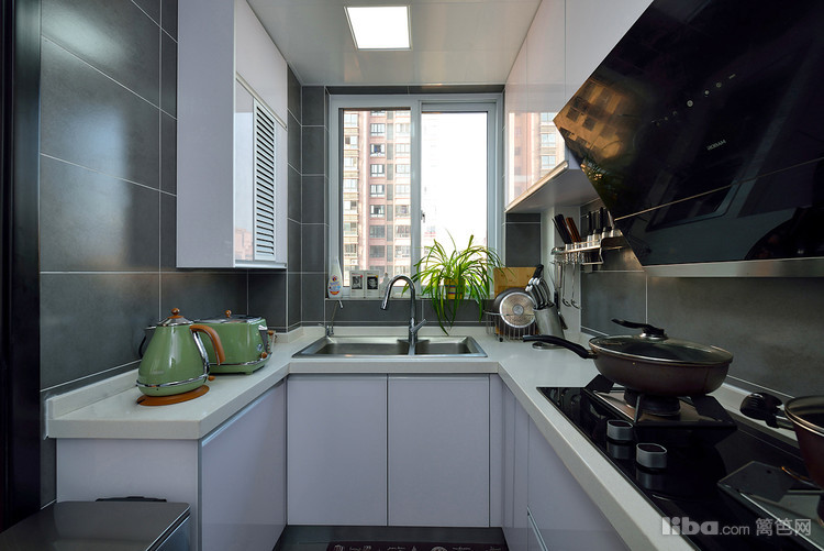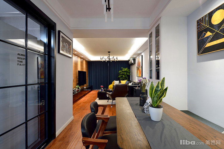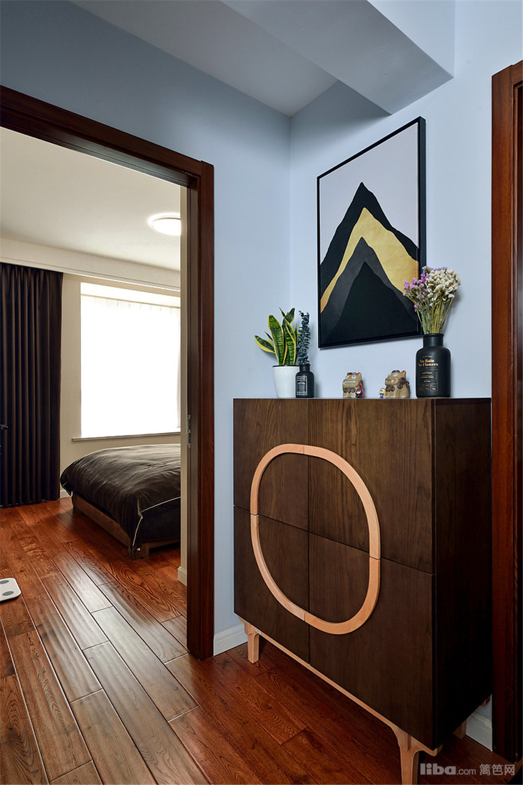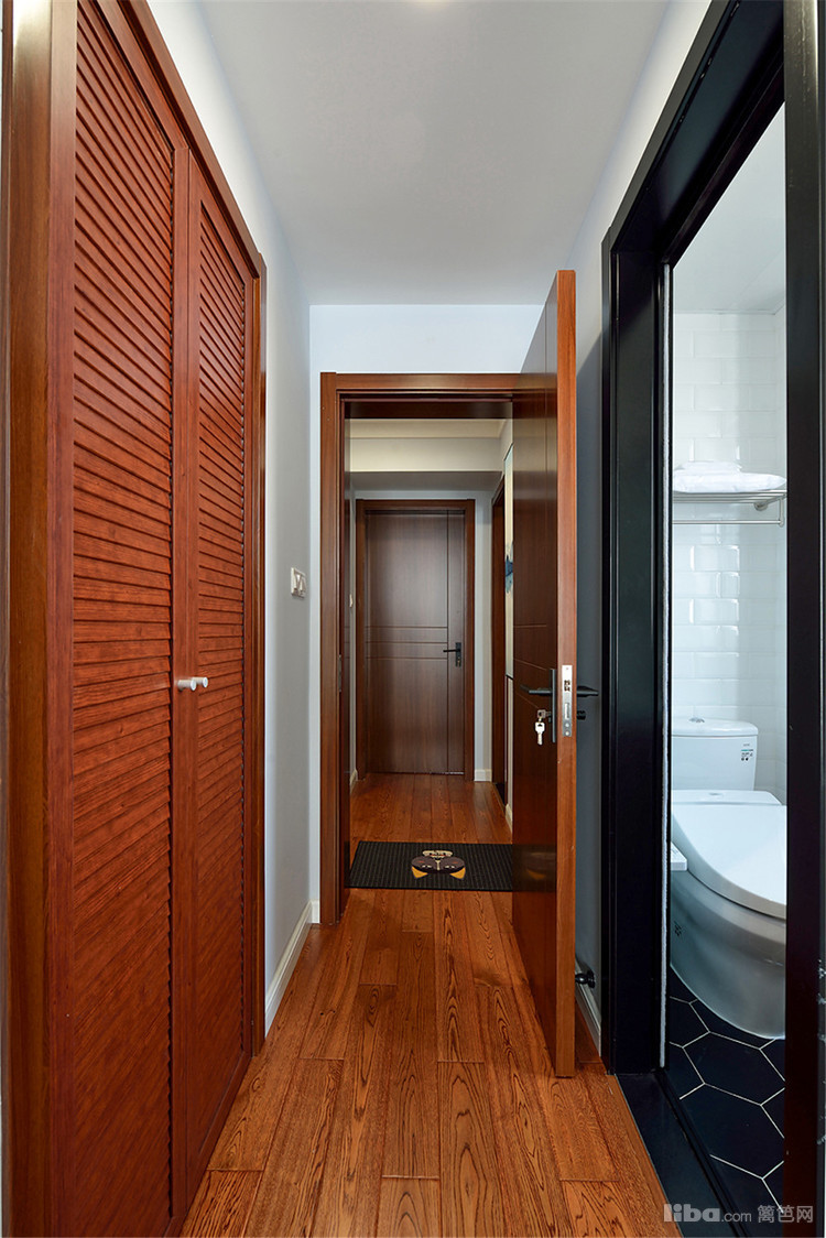 过道做了储物柜,用了灰镜,起到放大视觉效果的作用。