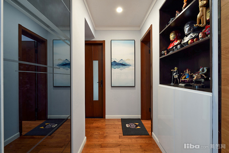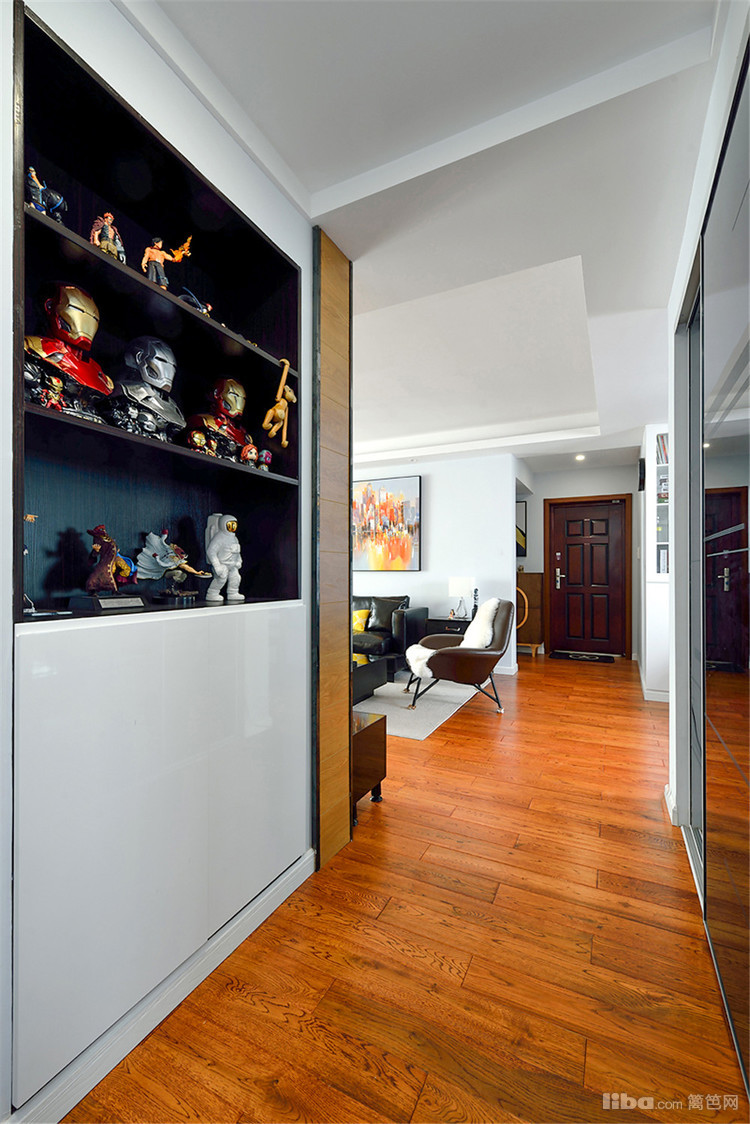 两遍过道都做了储物柜,左边的柜子放上了客户喜欢的公仔。