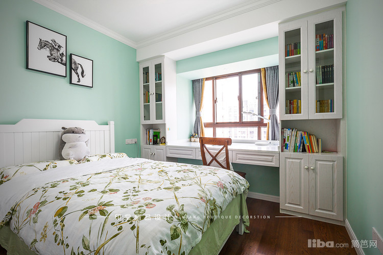 小孩房,两边的柜子都是木工现场制作的,美观与实用兼具。
