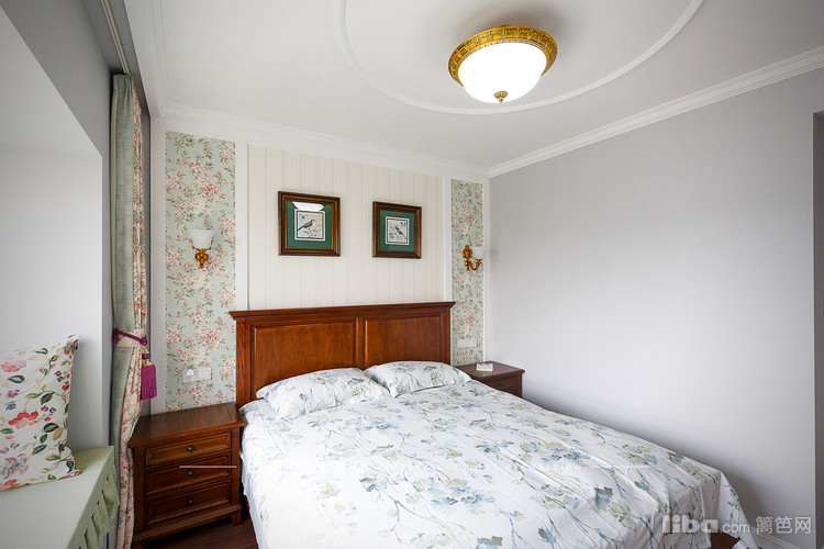 床头两旁做了壁灯,灯具也是美式复古风。