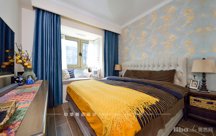 电视背景墙运用了墙纸+实木线条造型。