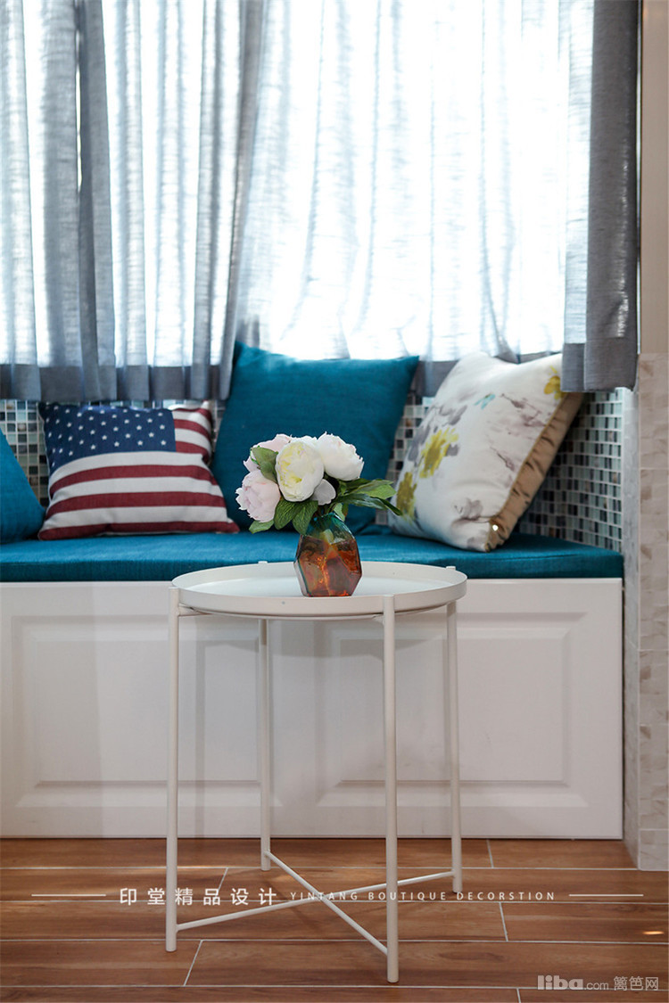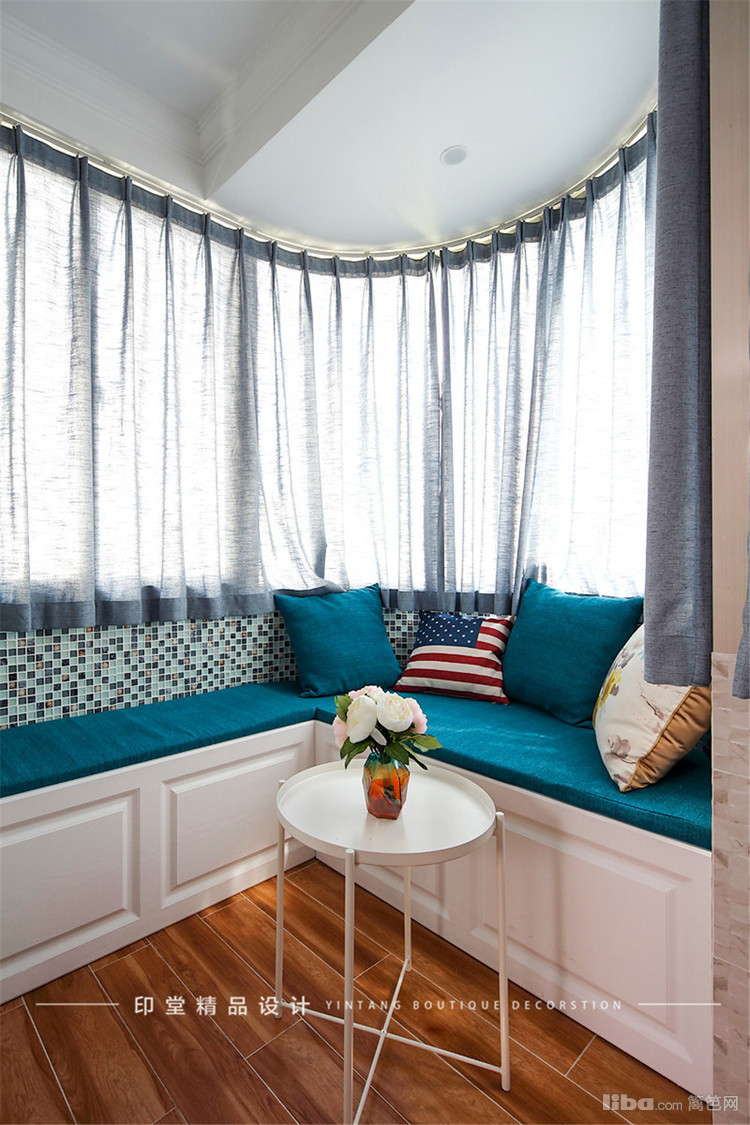 充分利用U型转角做了飘窗的设计,下方柜体可以作为收纳用,上面铺上舒软的坐垫靠枕,在这里仿佛可以忘了时间。