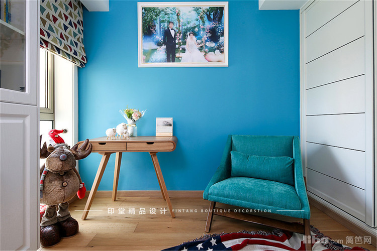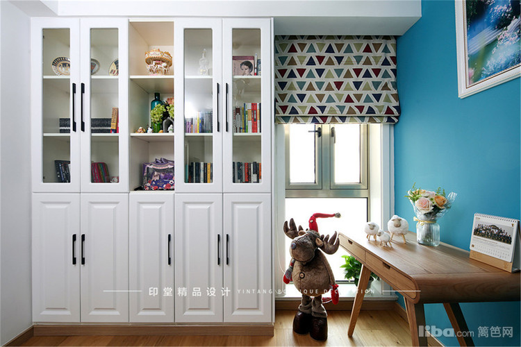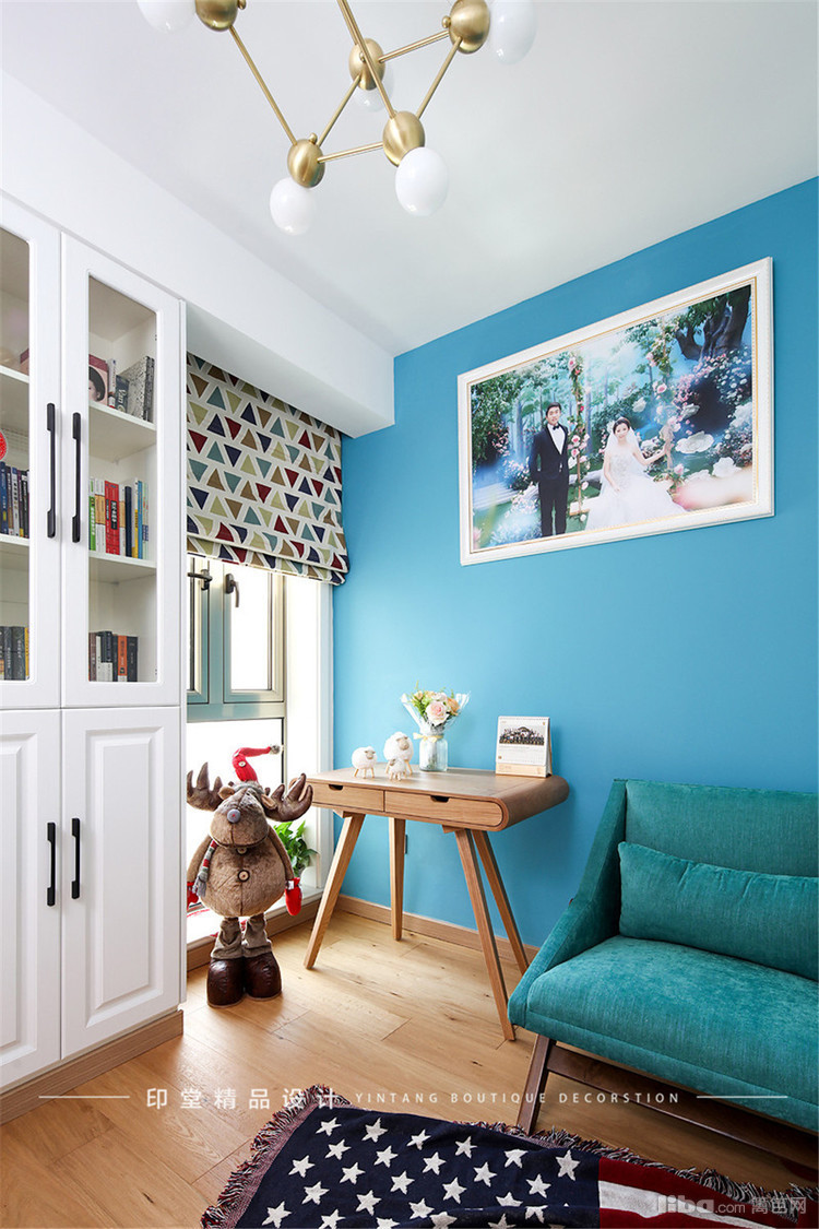 海洋和天空的蓝色被认为是我们生命中永恒的色彩。作为心灵的共通色,它可以唤起休憩之意,令身体产生安神的作用,所以设计师在书房的设计上大量运用。