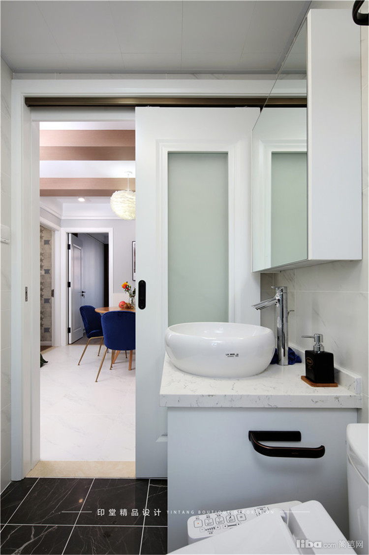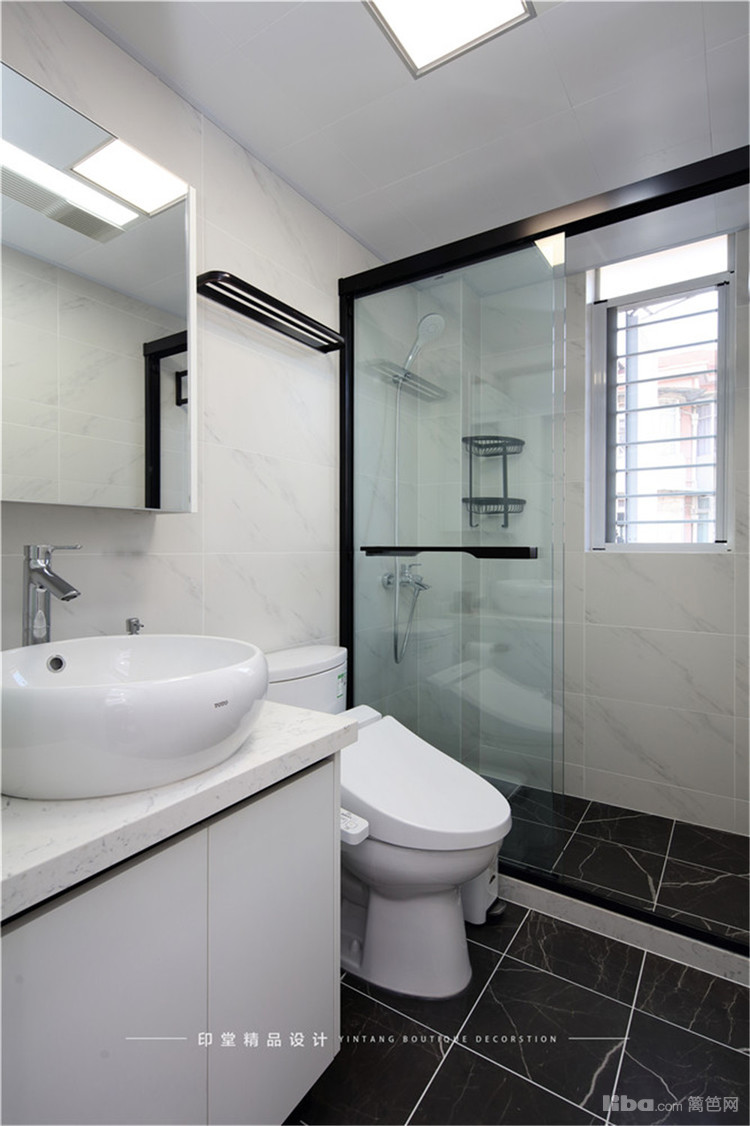 卫生间使用了白加黑的组合。让视觉效果向上延伸,不会产生压抑感。