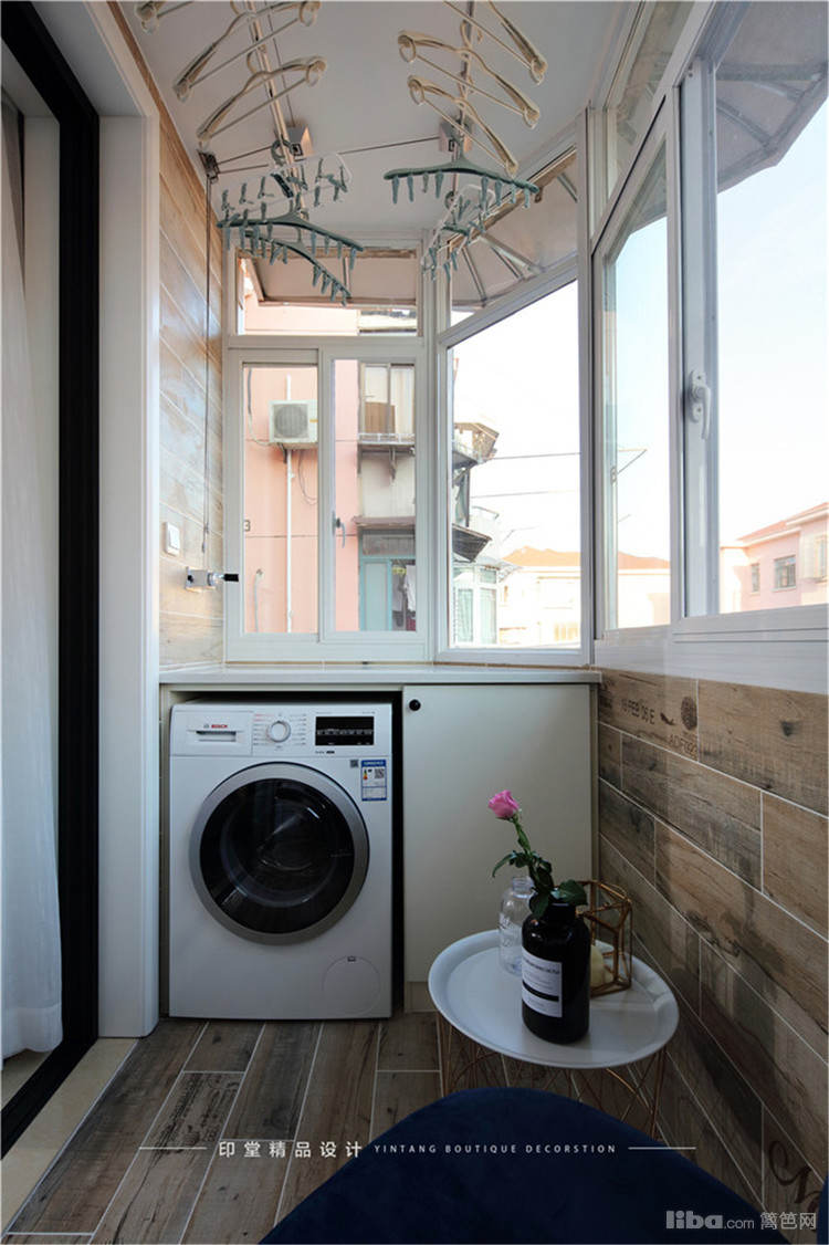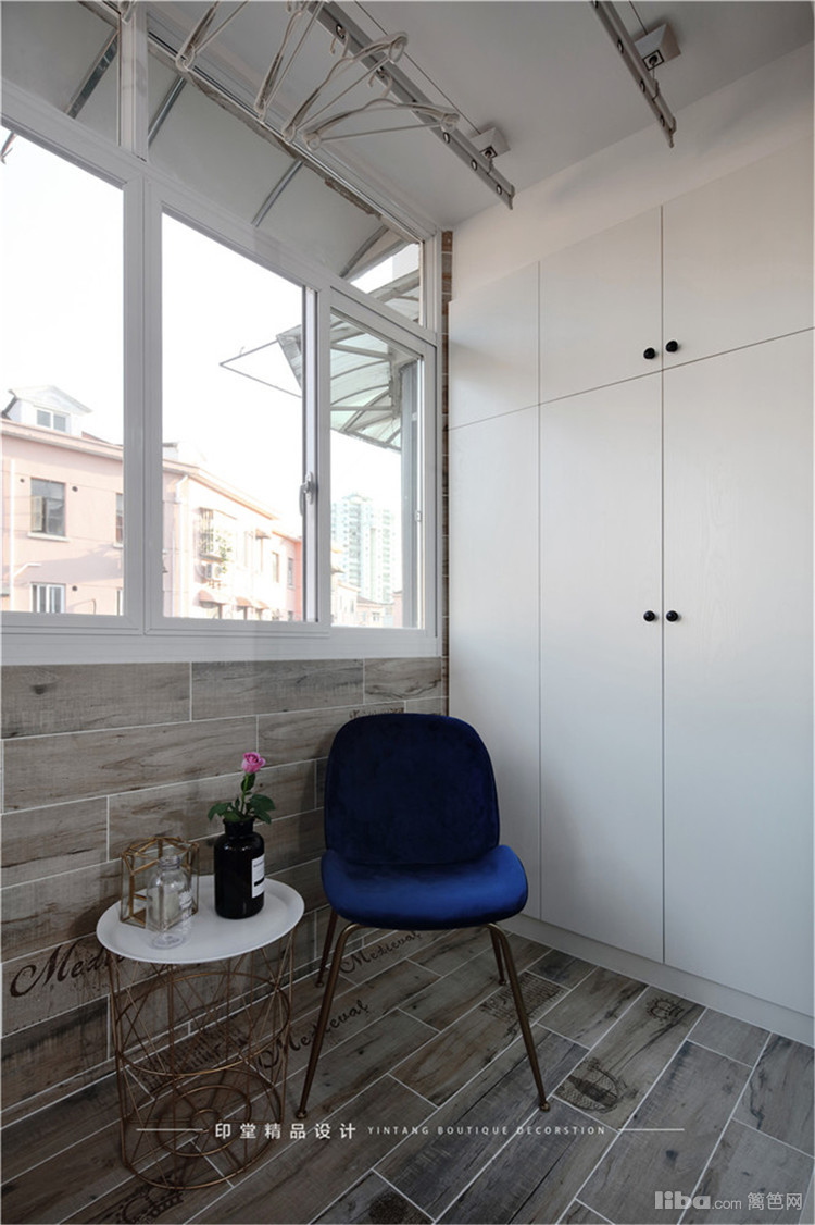 阳台是在主卧里面的,做了顶天立地的柜子,大大增加了收纳功能。