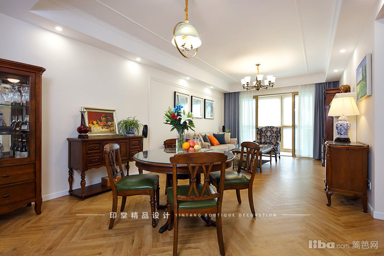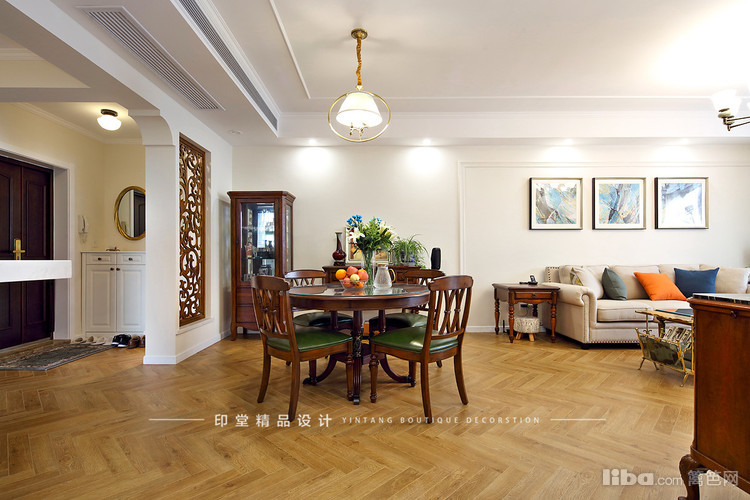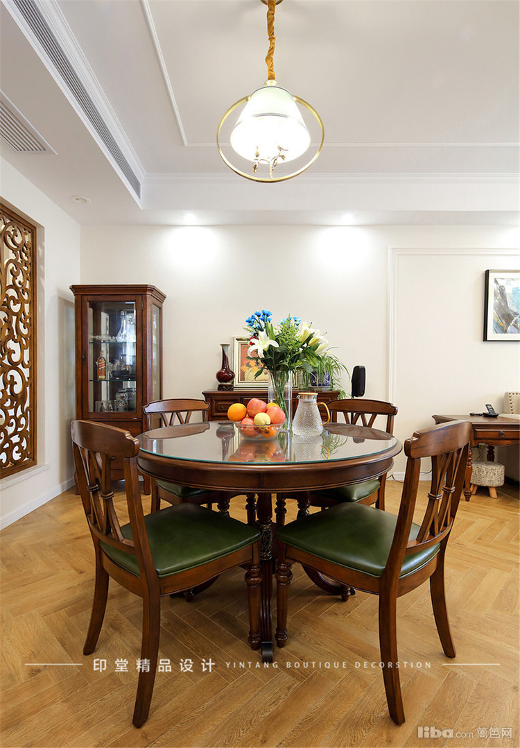 餐厅选择了实木餐桌椅,圆形桌不影响后期的动线。