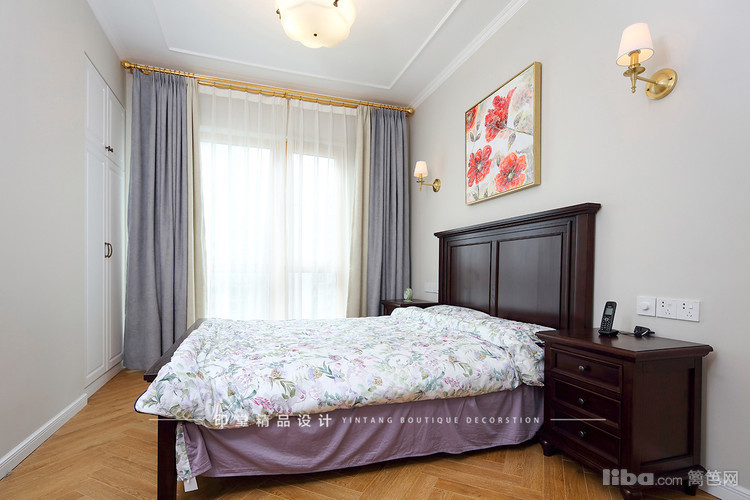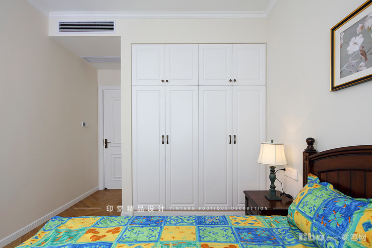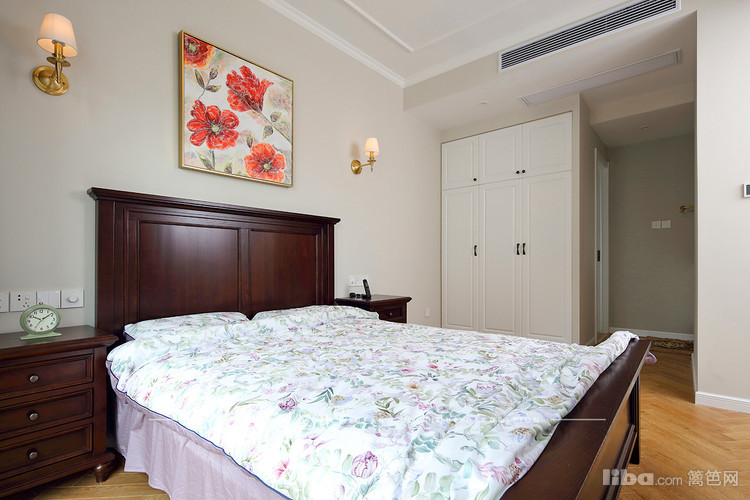 卧室延续了整体的简约美式格调,乳胶漆颜色的选取上均以浅色系为主。