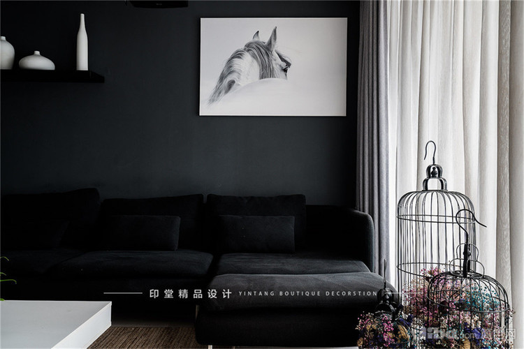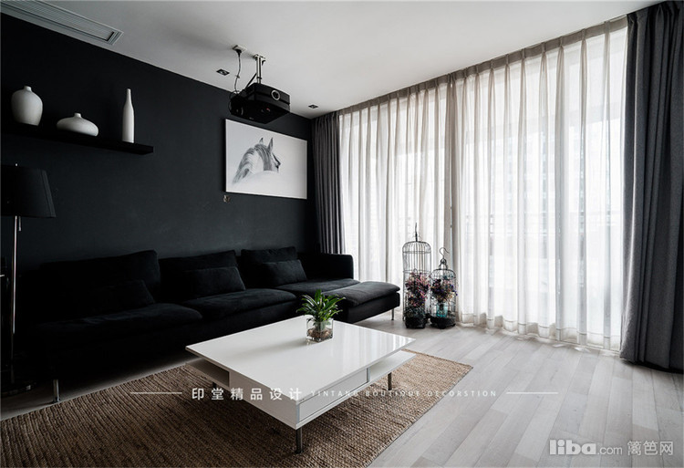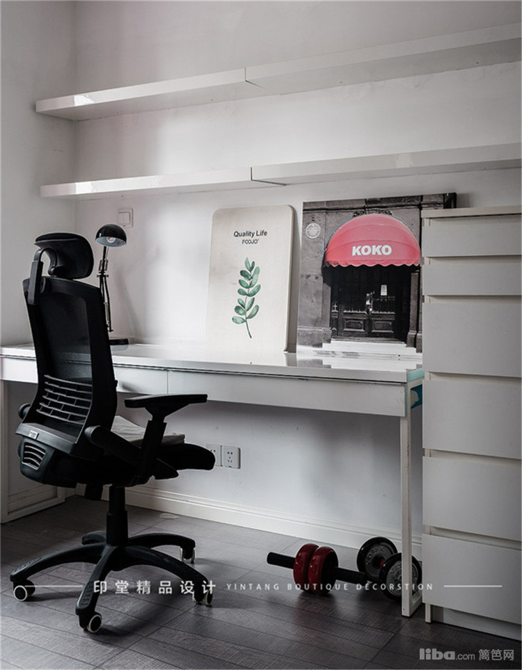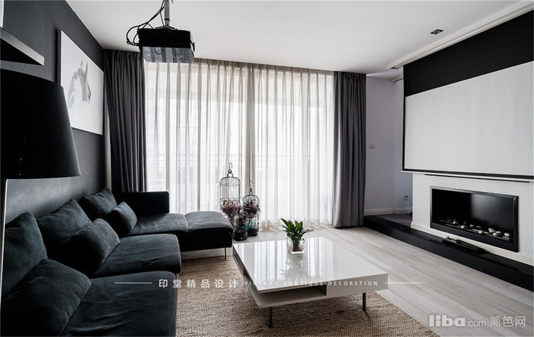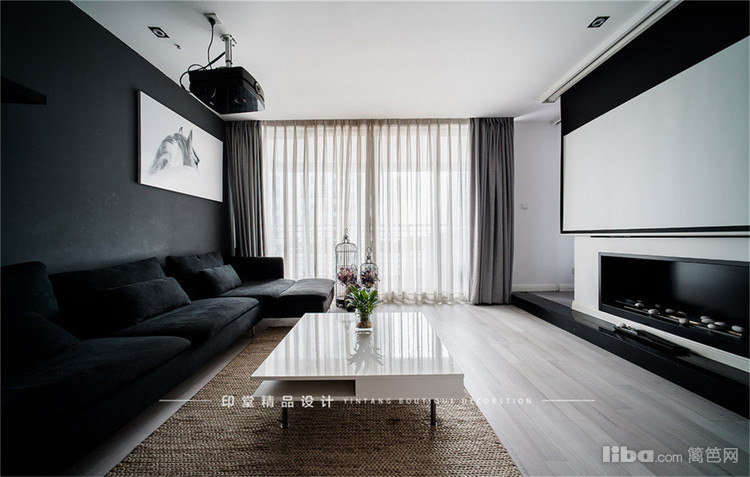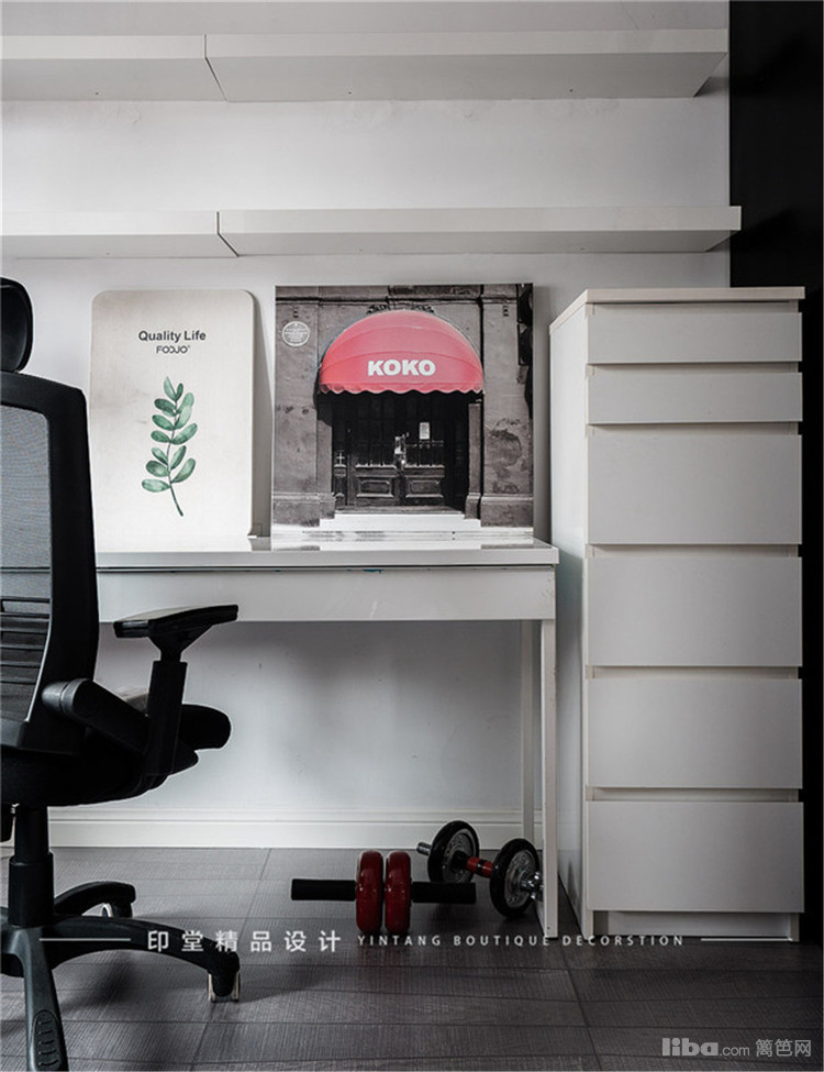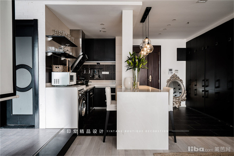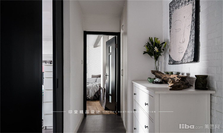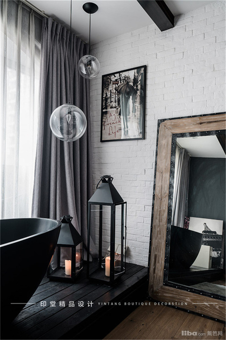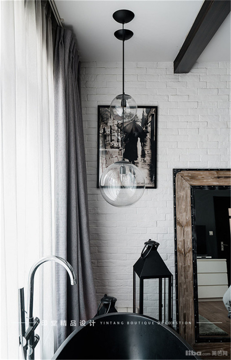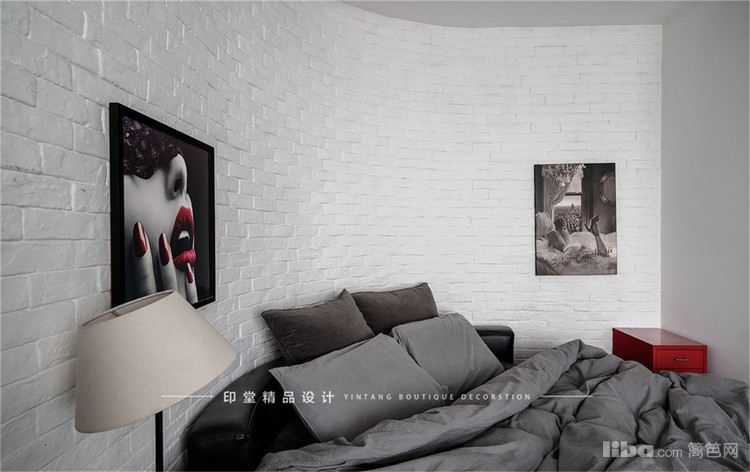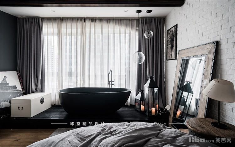 卧室搭配了圆床,做旧了假梁让整个空间摩登感十足。