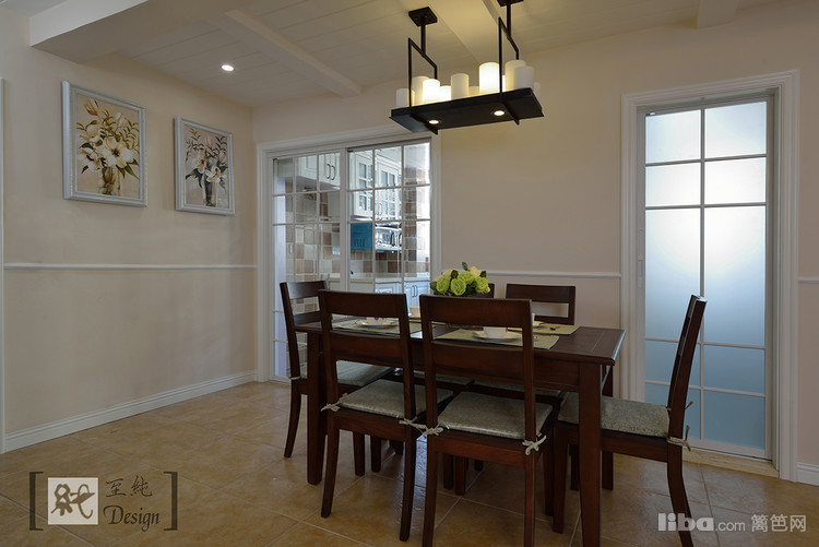进门的换鞋柜给生活带来实质性的方便功能,餐厅白色的吊顶和衣柜相呼应,给人一种简洁雅致之感。