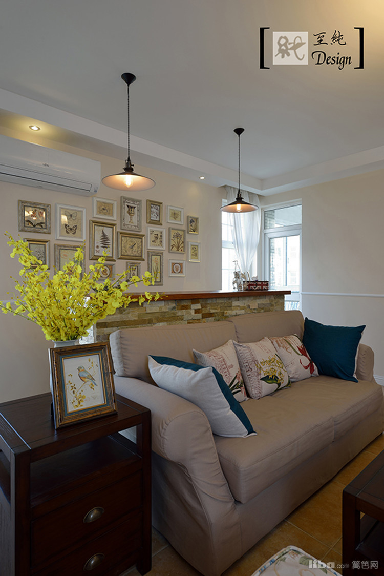 客厅巧妙地设计出一个吧台,不仅完美的诠释了美式中特有的情调,而且使方正的客厅充分利用。