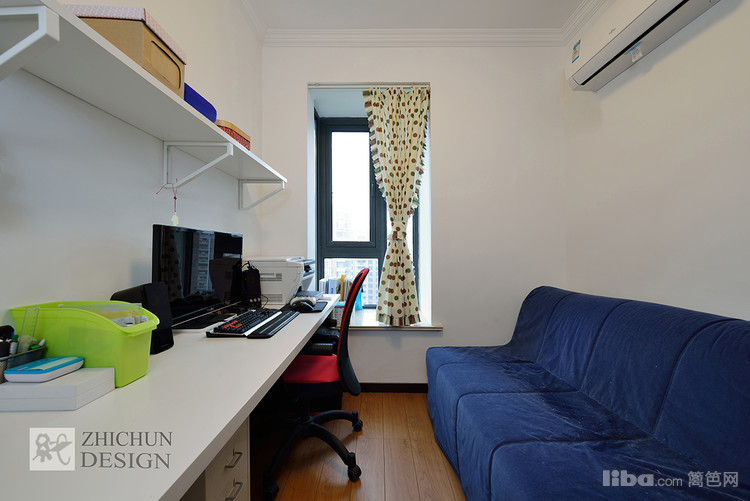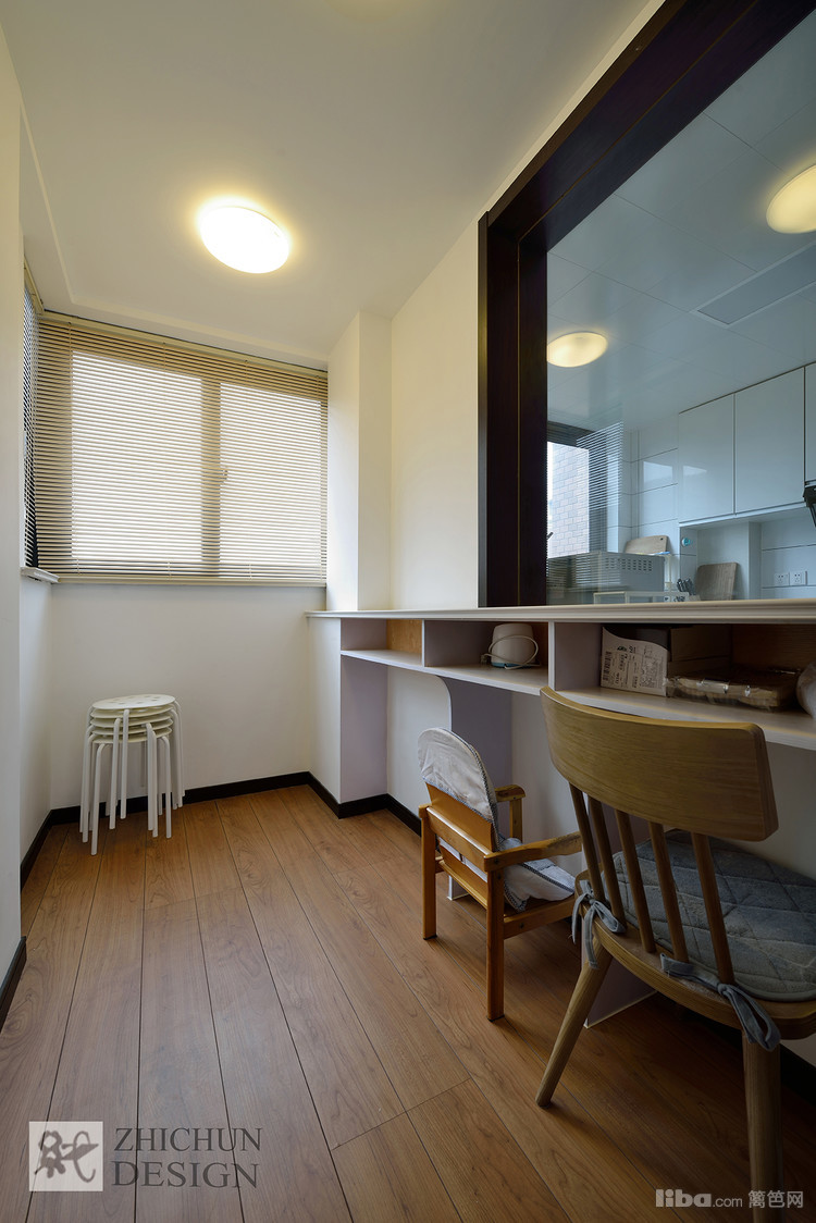 考虑到书房在半透明式厨房旁边,为使整个空间和谐的呼应起来,书房特做了吧台效果。