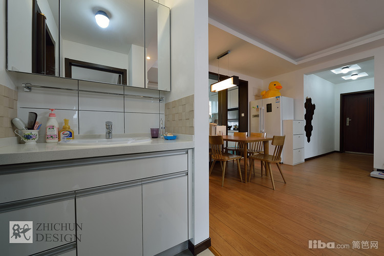 考虑三代同堂一个卫生间使用时会有些不方便,卫生间外又设置了干区台盆位置,然而解决了清晨起床洗漱的问题。