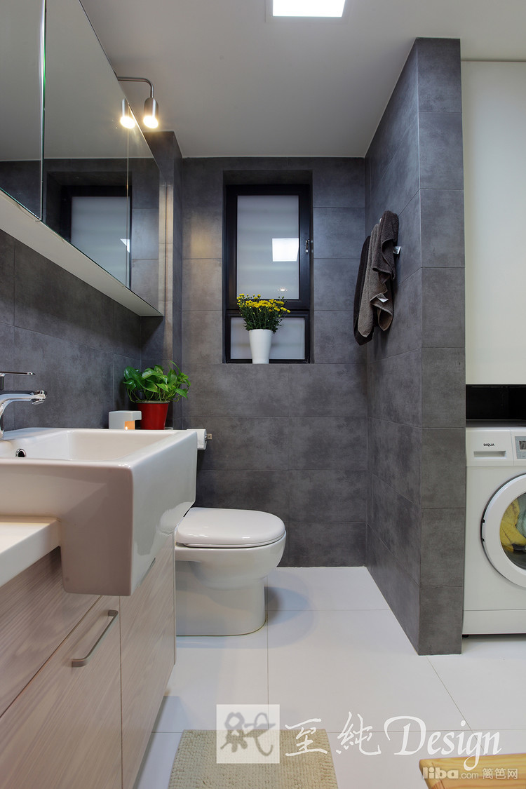 强大的卫生间,加配强大镜柜,干区的位置放了必备的洗衣机,洗衣机上方设置有三个组合柜,以便放置不同规格的生活用品;淋浴区为了方便取物,设计师特意在墙上设计了两个壁龛,增加了实用性。