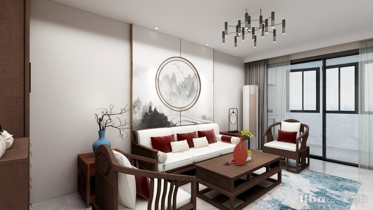 客厅沙发使用的是实木家具,结合现代轻盈的家居细节设计,整体效果更加有档次感。