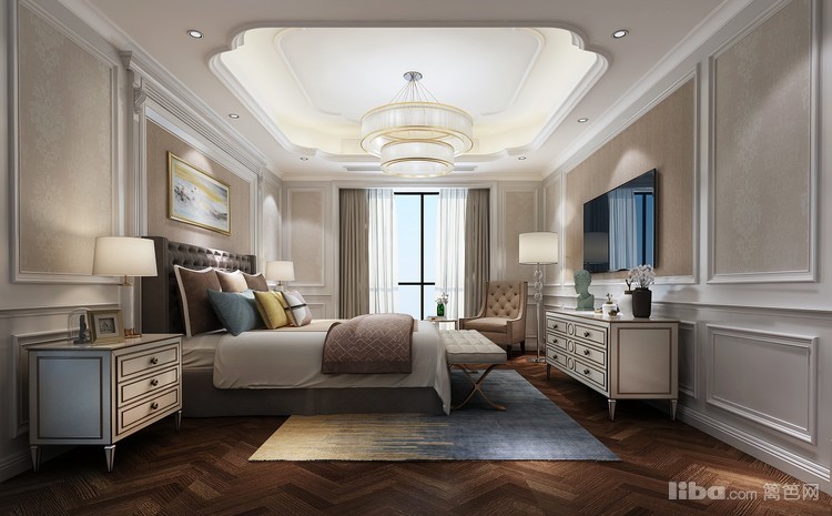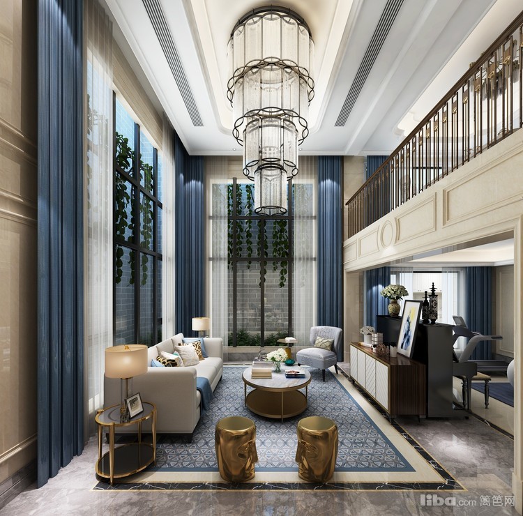 客厅层高较高,搭配流苏水晶灯,空间变得更加宽敞;