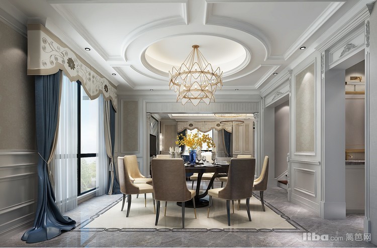 餐厅以米色为主,搭配蓝色的窗帘,提亮整个空间;