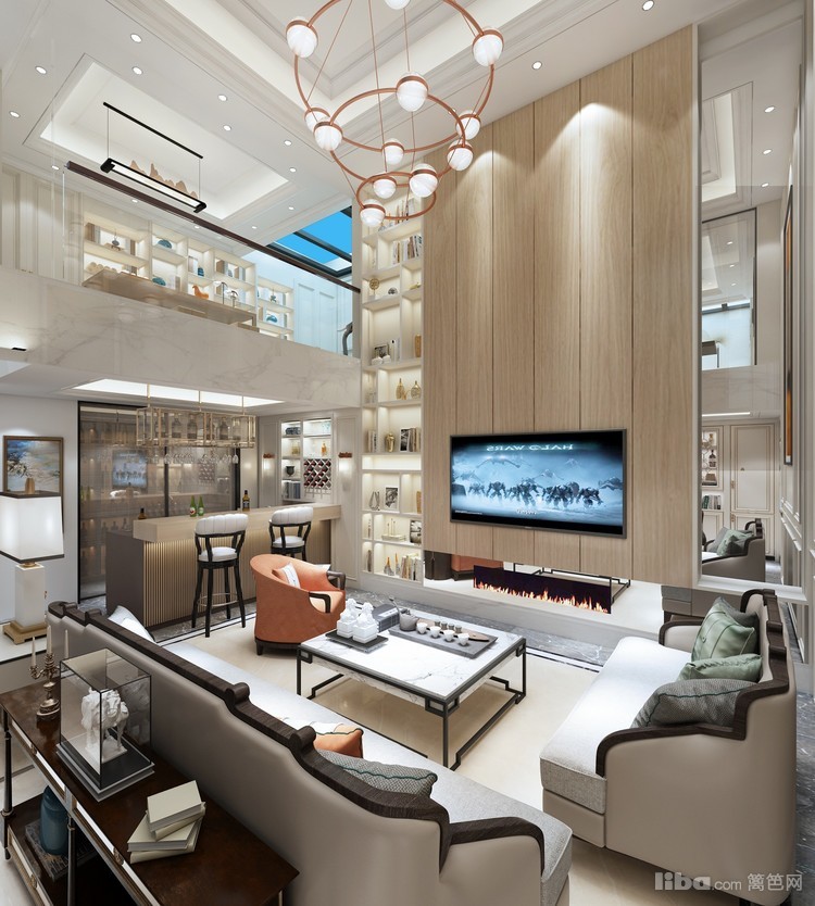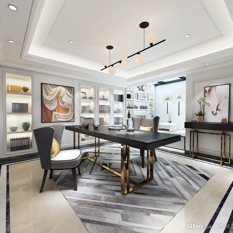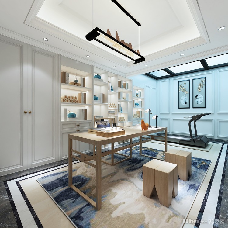将书柜设计成半开放式,节约空间的同时也可以将书籍分类摆放;