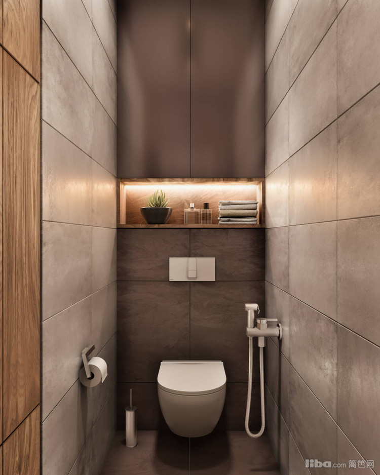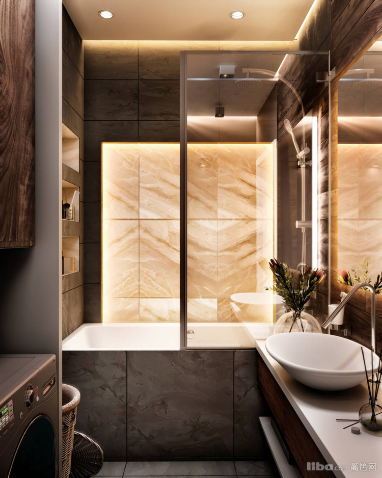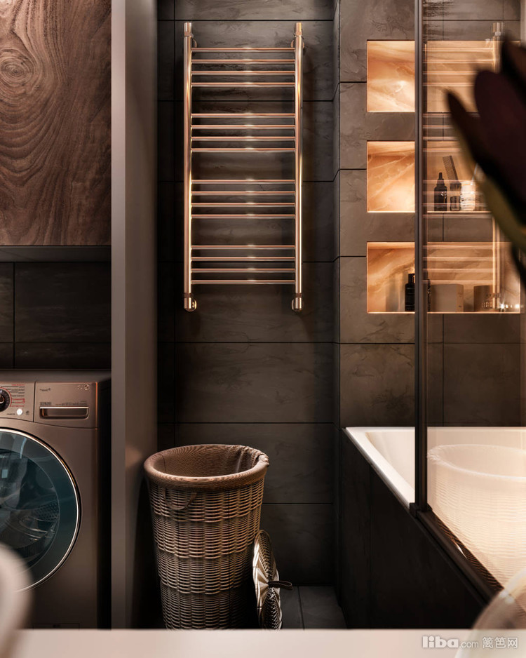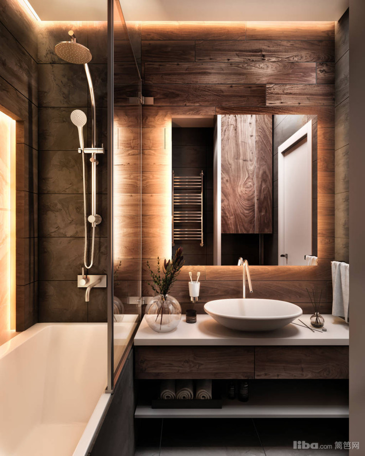 可可牛奶的柔和给卫生间以和谐优雅的空间氛围。黄色灯光与桃木色的结合,使置放的物品焕发出高贵的金色光泽。