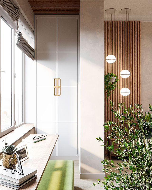 木质元素与公寓其他部分的颜色相同,营造出连续性和流动感