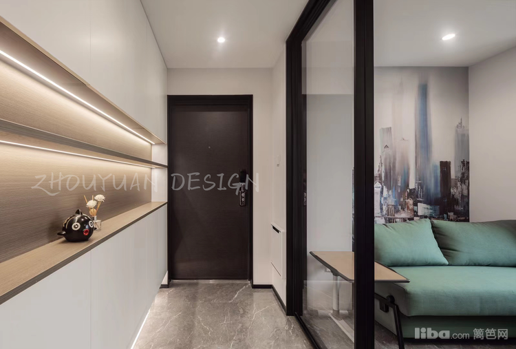 在玄关的材质选择上,选用易于清洁、防污的材料,如大理石、瓷砖、玻璃等。这些材料与黑白灰的风格很好地融合在一起,并且非常耐用、易于保养。
