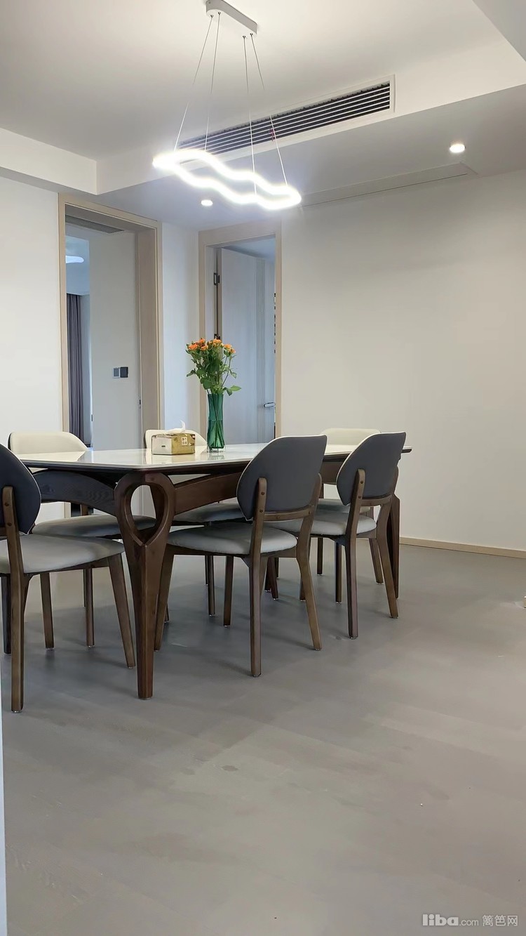 餐厅选用了灰色系木质桌椅,和家里整体风格搭配
