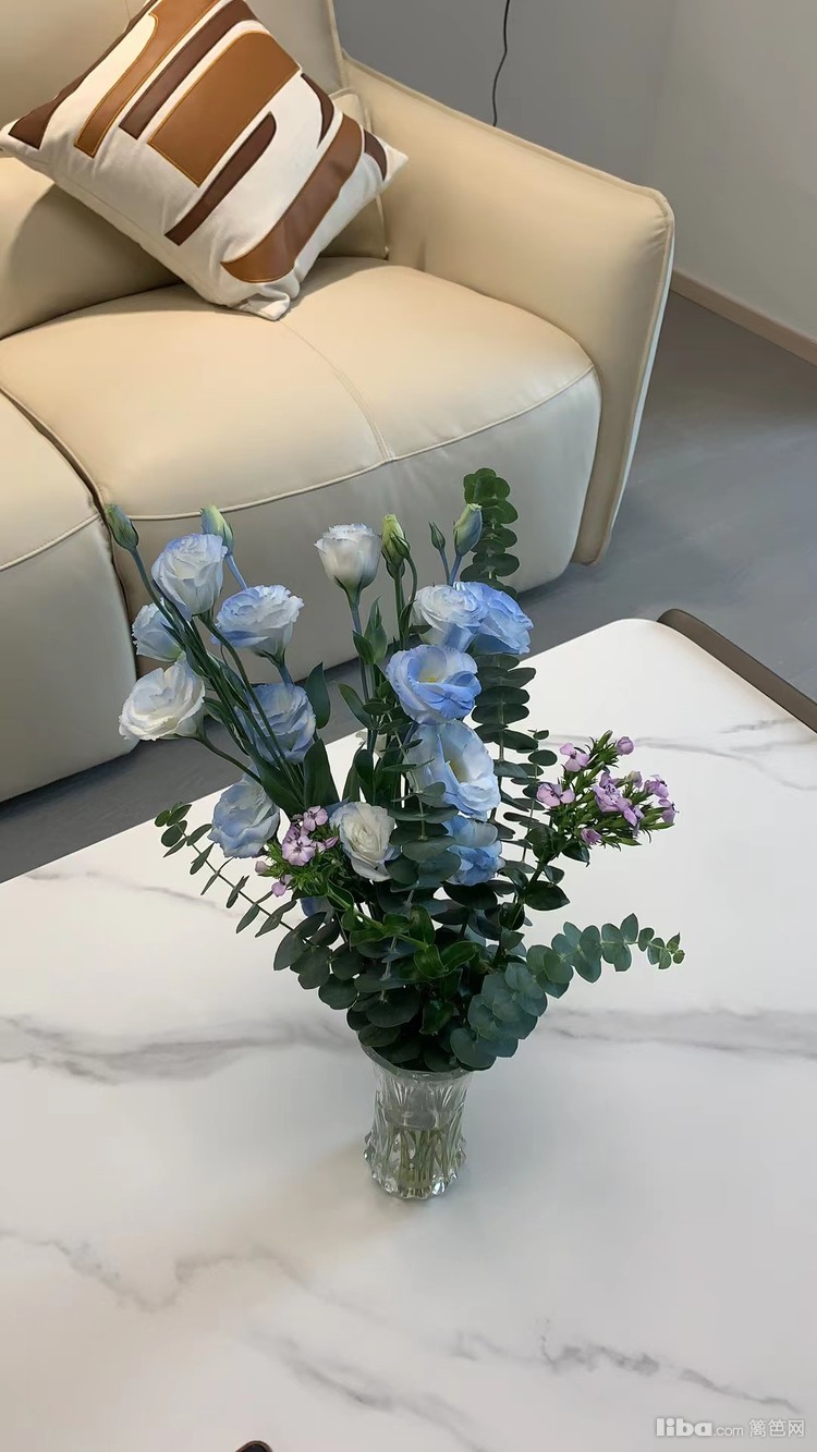 客厅整体没有太多的装饰,桌面摆上履职,整个空间变得生动。