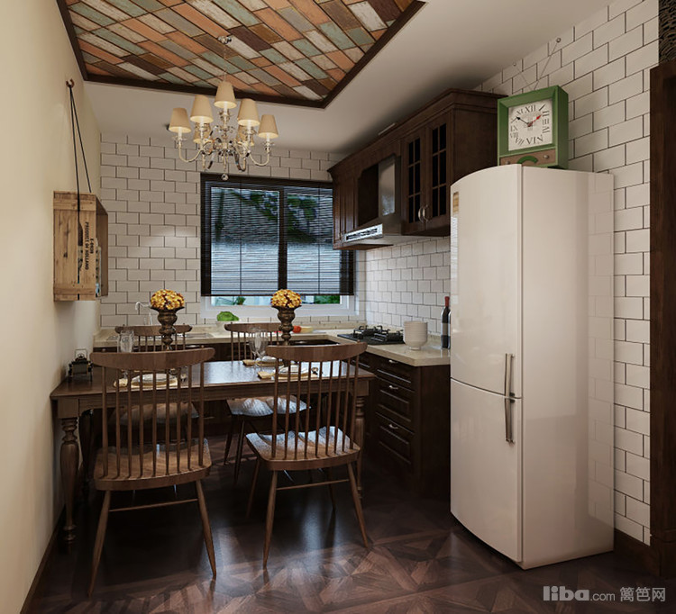 餐顶吊顶上采用了彩色的地板装饰,别具一格。