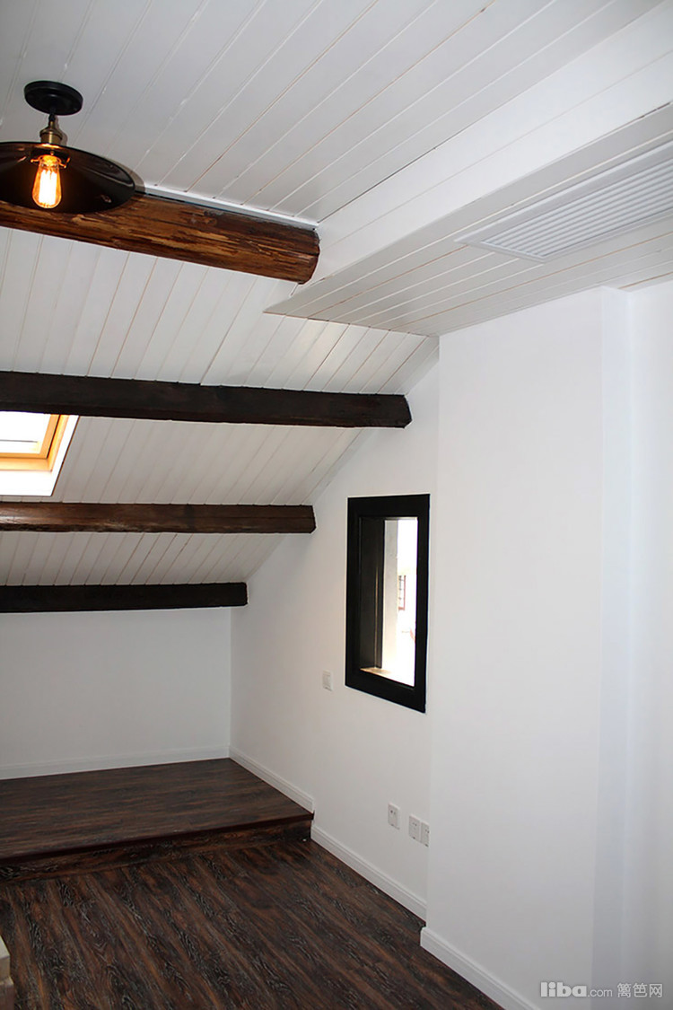 二楼做为卧室,白扣板使空间显得更大。屋顶开了天窗,房间采光更好。