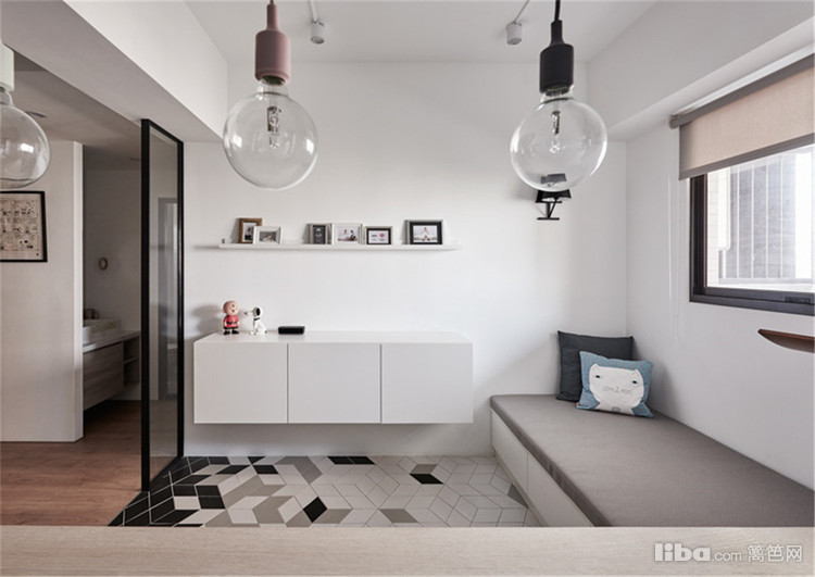 整体给人感觉是简约型,没有复杂的设计布局,客厅中有着碎花的飘窗让人有种春天的气息。